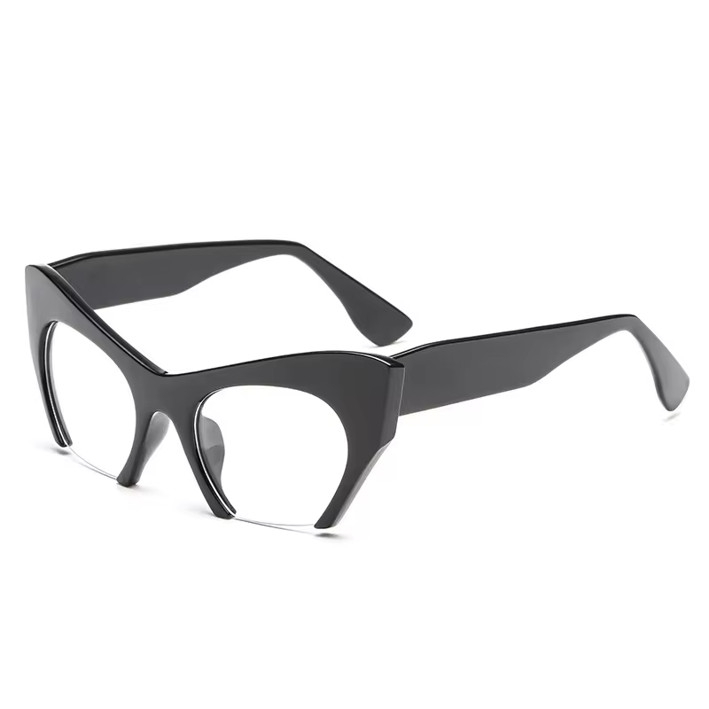 Trendy Fashion Cat Eye Style Retro Frame Glasses Black with Logo